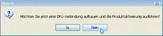 SiDiary fragt dann, ob Sie den Lizenzschlüssel manuell eingeben wollen. Klicken Sie auf 'Ja':