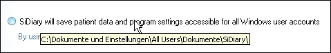 In the Data storage location you can define where SiDiary stores your data. After clicking on Data storage location you will see this notice: