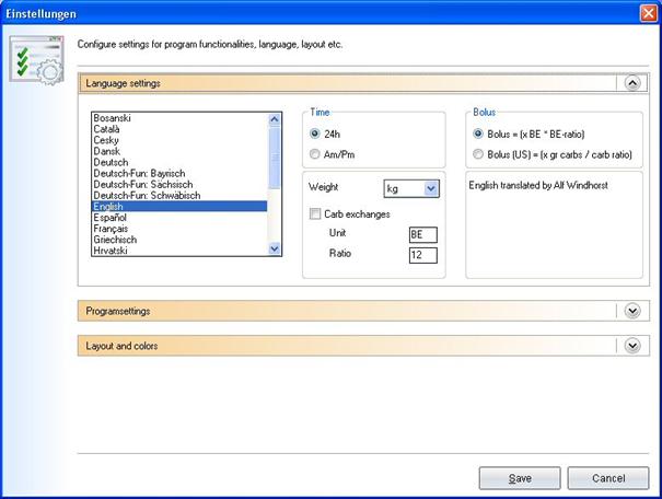 You do not have to save every single setting by clicking on the Save button, if you for example want to open a dropdown list. After you made all of your settings, please click on Save. The settings screen closes and the adjustments will be saved at the next time when you open this part of the program. (For example: When your detail logbook is opened and you adjust the color settings, you have to close the detail logbook and open it again, in order to activate the new settings).